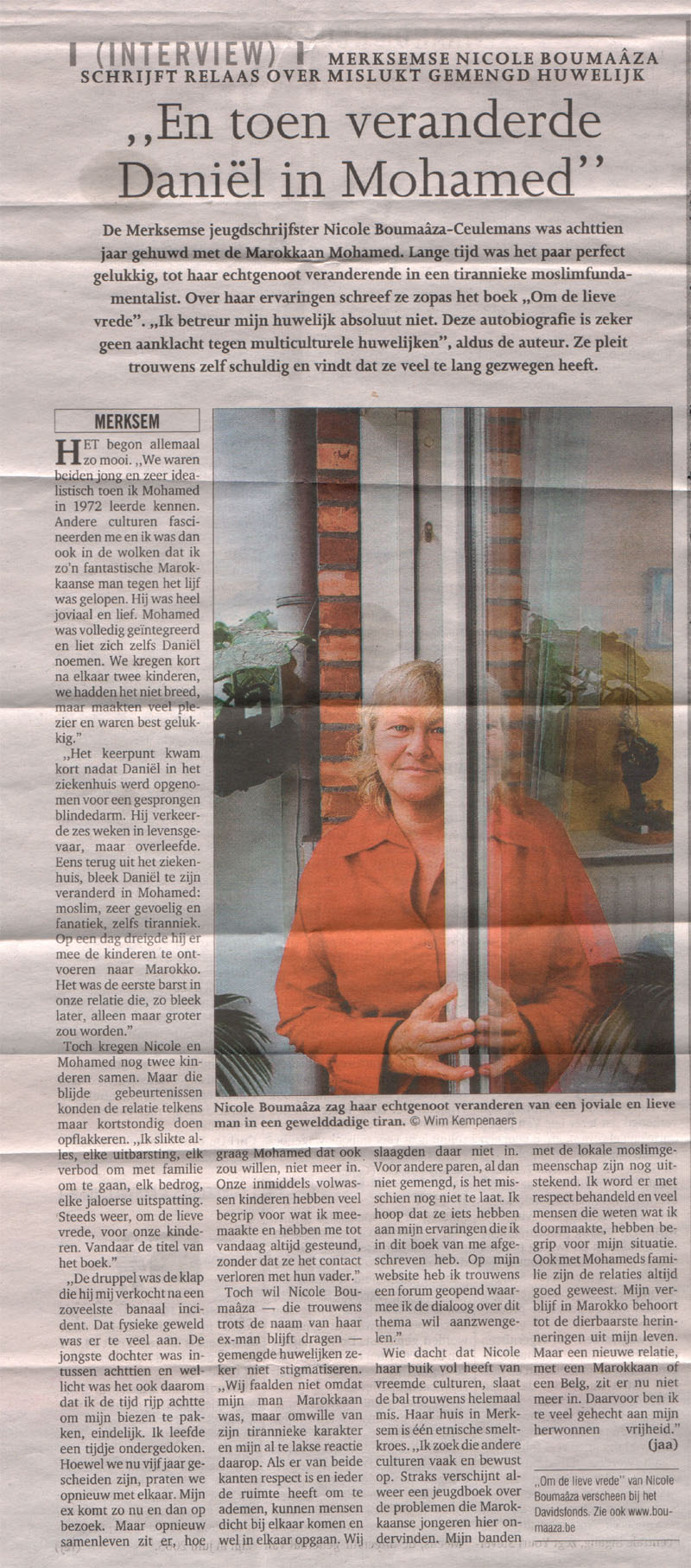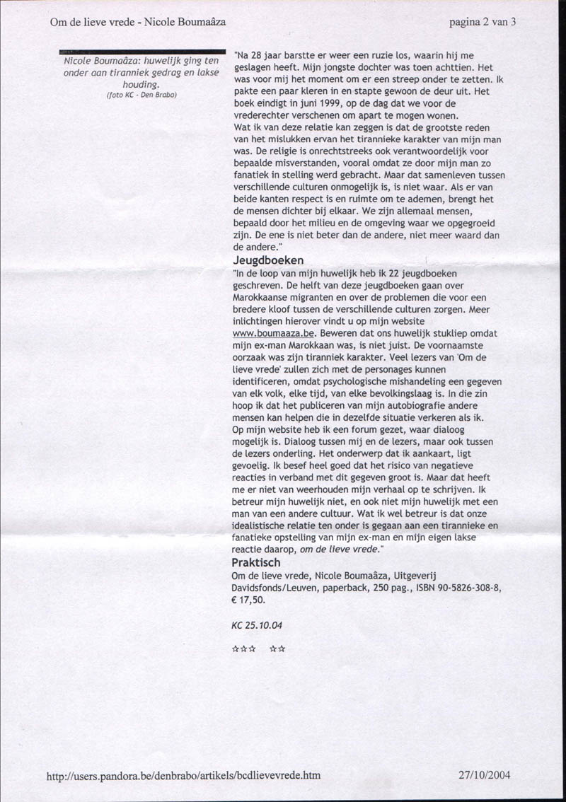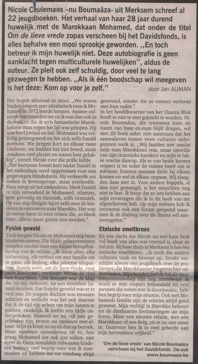 [Welkom] [Inleiding nicole] [Bibliografie] [Fotoalbum] [Gastenboek en Forum] [recensies en links] [Artikels] [Anderen] [Contacteer Mij] [Links]